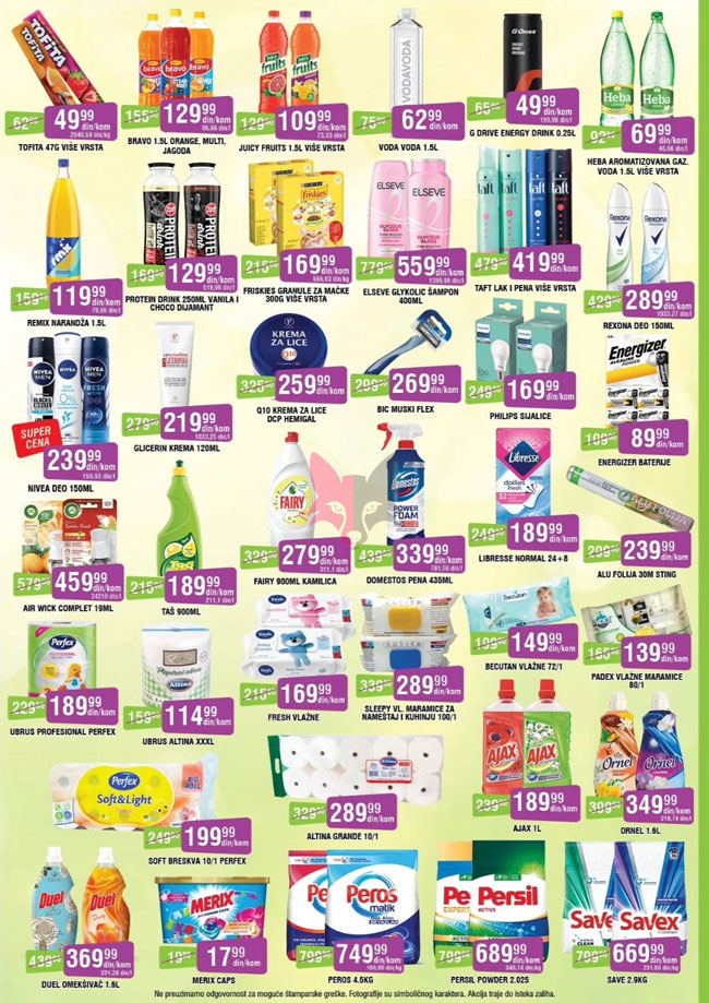 Svi katalozi i cene objavljeni na Lisica.RS Akcijskim katalozima su informativni tako da pre kupovine obavezno proverite ponudu na licu mesta. Pošto trgovci mogu bez najave da izvrše izmenu već objavljenih akcijskih kataloga, Lisica.RS Akcijski katalozi ne može biti odgovoran za važnost i tačnost istih. Lisica.RS Akcijski katalozi ne vrši prodaju proizvoda označenih na akcijskim katalozima.