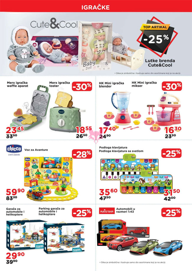 Hrana i piće, Kozmetika i nega, Kućna hemija, Mali kućni aparati, Nameštaj, Ostalo za kuću i stan, Sve za auto, Sve za bebe, Sve za igru, Sve za putovanje