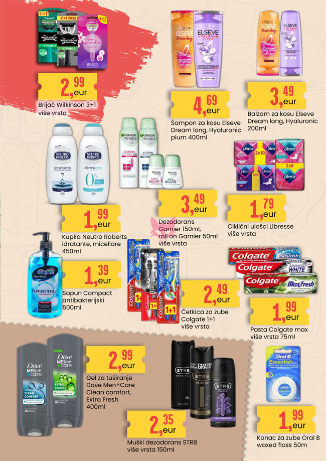Hrana i piće, Kozmetika i nega, Kućna hemija, Ostalo za kuću i stan, Sve za bebe, Sve za kućne ljubimce, Sve za slavlja i praznike