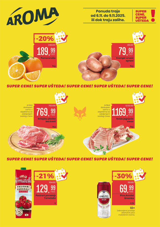 Svi katalozi i cene objavljeni na Lisica.RS Akcijskim katalozima su informativni tako da pre kupovine obavezno proverite ponudu na licu mesta. Pošto trgovci mogu bez najave da izvrše izmenu već objavljenih akcijskih kataloga, Lisica.RS Akcijski katalozi ne može biti odgovoran za važnost i tačnost istih. Lisica.RS Akcijski katalozi ne vrši prodaju proizvoda označenih na akcijskim katalozima.