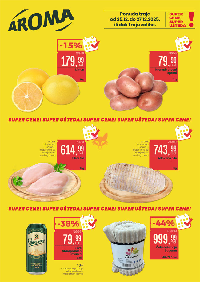 Svi katalozi i cene objavljeni na Lisica.RS Akcijskim katalozima su informativni tako da pre kupovine obavezno proverite ponudu na licu mesta. Pošto trgovci mogu bez najave da izvrše izmenu već objavljenih akcijskih kataloga, Lisica.RS Akcijski katalozi ne može biti odgovoran za važnost i tačnost istih. Lisica.RS Akcijski katalozi ne vrši prodaju proizvoda označenih na akcijskim katalozima.