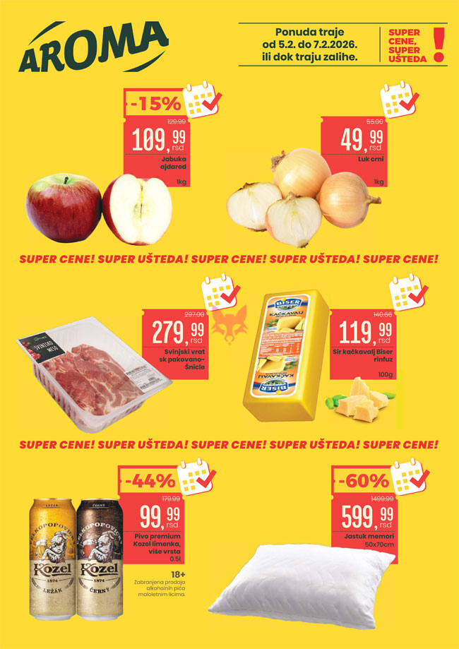 Svi katalozi i cene objavljeni na Lisica.RS Akcijskim katalozima su informativni tako da pre kupovine obavezno proverite ponudu na licu mesta. Pošto trgovci mogu bez najave da izvrše izmenu već objavljenih akcijskih kataloga, Lisica.RS Akcijski katalozi ne može biti odgovoran za važnost i tačnost istih. Lisica.RS Akcijski katalozi ne vrši prodaju proizvoda označenih na akcijskim katalozima.
