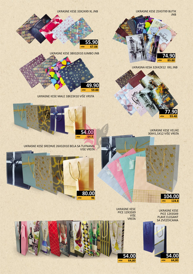 Hrana i piće, Kozmetika i nega, Kućna hemija, Ostalo za kuću i stan, Sve za igru, Sve za kućne ljubimce, Sve za slavlja i praznike