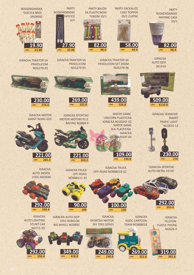 Hrana i piće, Kozmetika i nega, Kućna hemija, Mali kućni aparati, Ostalo za kuću i stan, Sve za igru, Sve za kućne ljubimce, Sve za slavlja i praznike