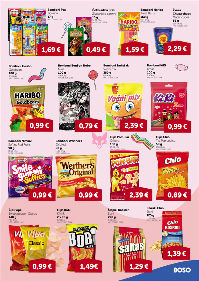 Hrana i piće, Kozmetika i nega, Kućna hemija, Odeća i obuća, Ostalo za kuću i stan, Sve za kućne ljubimce, Sve za slavlja i praznike