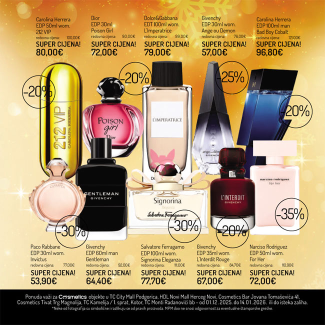 Cosmetics, Crna Gora : Perfumery Decembar 2025 - Januar 2026