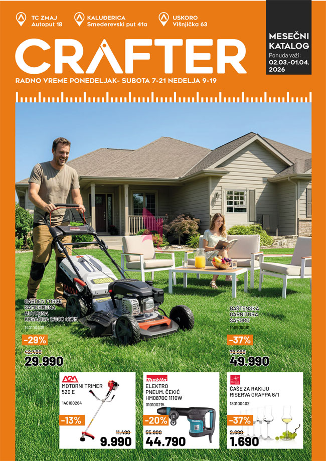 01.04.2026.Alati i mašine, Nameštaj, Odeća i obuća, Opremanje kupatila, Ostalo za kuću i stan, Rasveta, Sve za baštu i dvorište, Sve za gradnju i održavanje