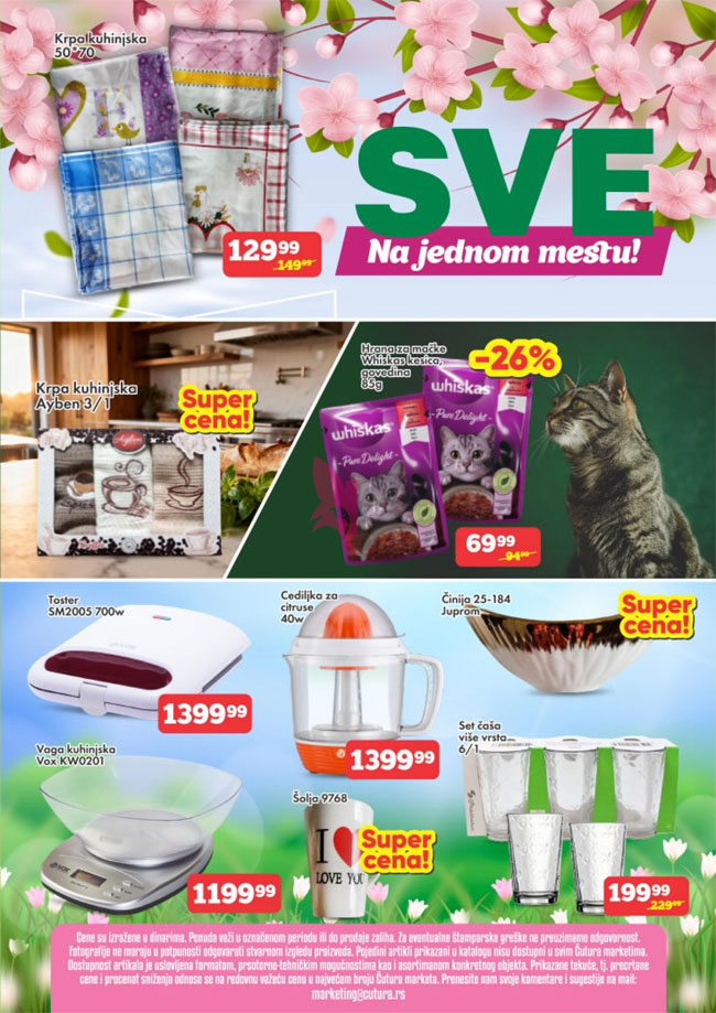 Hrana i piće, Kozmetika i nega, Kućna hemija, Mali kućni aparati, Ostalo za kuću i stan, Sve za kućne ljubimce