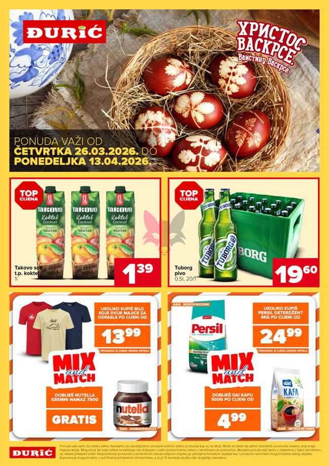 13.04.2026.Hrana i piće, Kozmetika i nega, Kućna hemija, Odeća i obuća, Ostalo za kuću i stan, Sve za bebe, Sve za slavlja i praznike