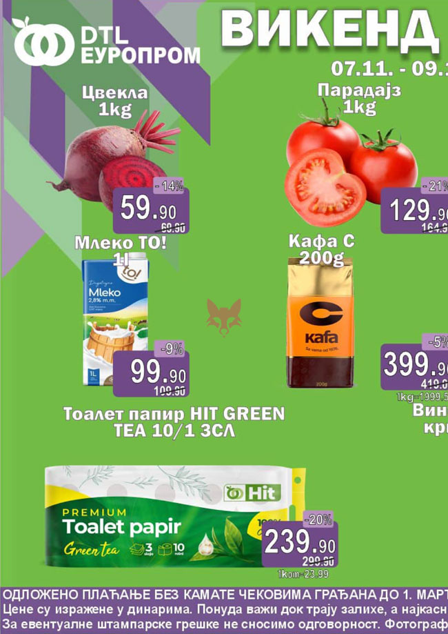 Svi katalozi i cene objavljeni na Lisica.RS Akcijskim katalozima su informativni tako da pre kupovine obavezno proverite ponudu na licu mesta. Pošto trgovci mogu bez najave da izvrše izmenu već objavljenih akcijskih kataloga, Lisica.RS Akcijski katalozi ne može biti odgovoran za važnost i tačnost istih. Lisica.RS Akcijski katalozi ne vrši prodaju proizvoda označenih na akcijskim katalozima.