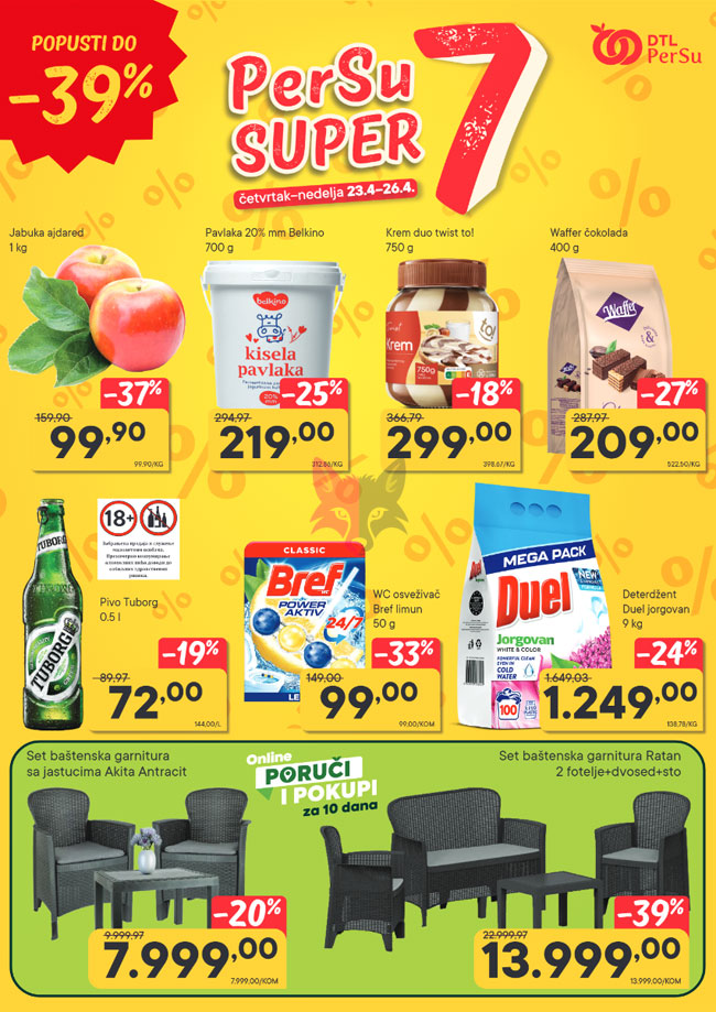 Hrana i piće, Kućna hemija, Nameštaj, Sve za baštu i dvorište