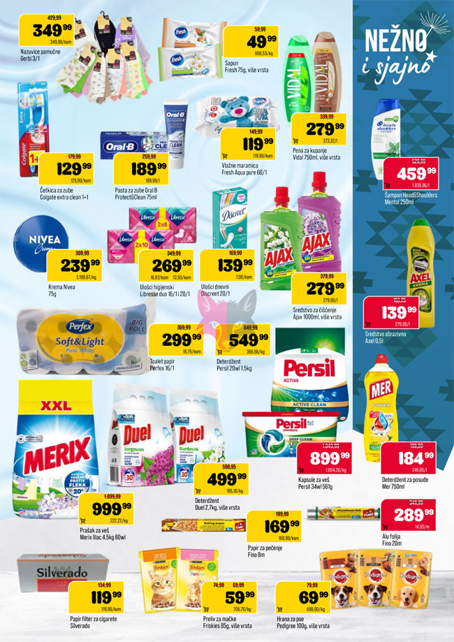Hrana i piće, Kozmetika i nega, Kućna hemija, Mali kućni aparati, Ostalo za kuću i stan, Sve za baštu i dvorište, Sve za kućne ljubimce, Sve za slavlja i praznike