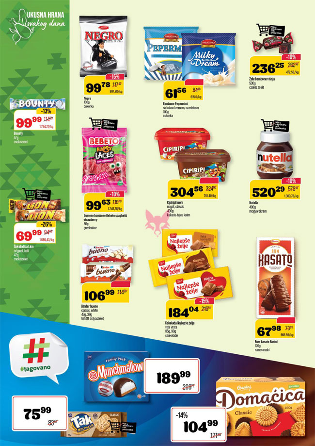 Hrana i piće, Kozmetika i nega, Kućna hemija, Odeća i obuća, Ostalo za kuću i stan