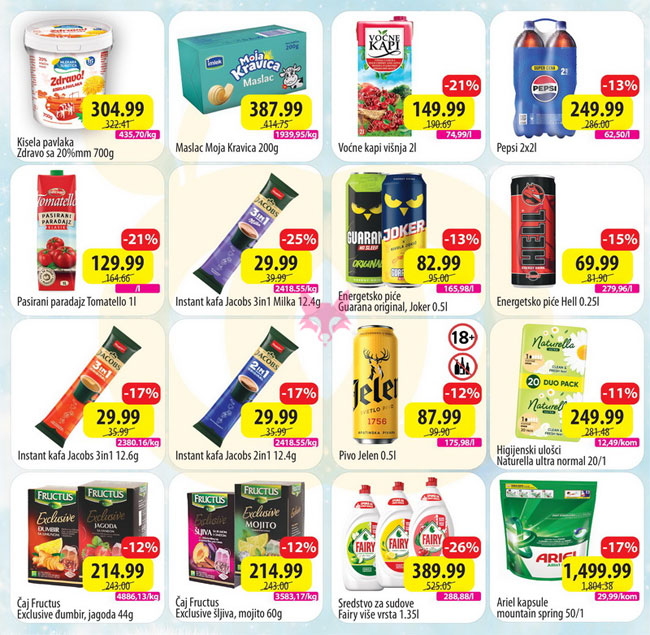 Hrana i piće, Kozmetika i nega, Kućna hemija, Mali kućni aparati, Ostalo za kuću i stan, Sve za slavlja i praznike