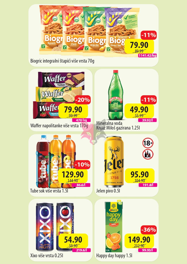 Svi katalozi i cene objavljeni na Lisica.RS Akcijskim katalozima su informativni tako da pre kupovine obavezno proverite ponudu na licu mesta. Pošto trgovci mogu bez najave da izvrše izmenu već objavljenih akcijskih kataloga, Lisica.RS Akcijski katalozi ne može biti odgovoran za važnost i tačnost istih. Lisica.RS Akcijski katalozi ne vrši prodaju proizvoda označenih na akcijskim katalozima.