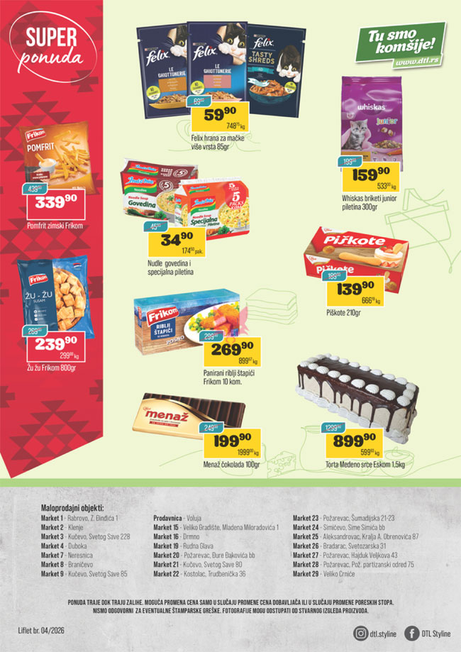 Svi katalozi i cene objavljeni na Lisica.RS Akcijskim katalozima su informativni tako da pre kupovine obavezno proverite ponudu na licu mesta. Pošto trgovci mogu bez najave da izvrše izmenu već objavljenih akcijskih kataloga, Lisica.RS Akcijski katalozi ne može biti odgovoran za važnost i tačnost istih. Lisica.RS Akcijski katalozi ne vrši prodaju proizvoda označenih na akcijskim katalozima.