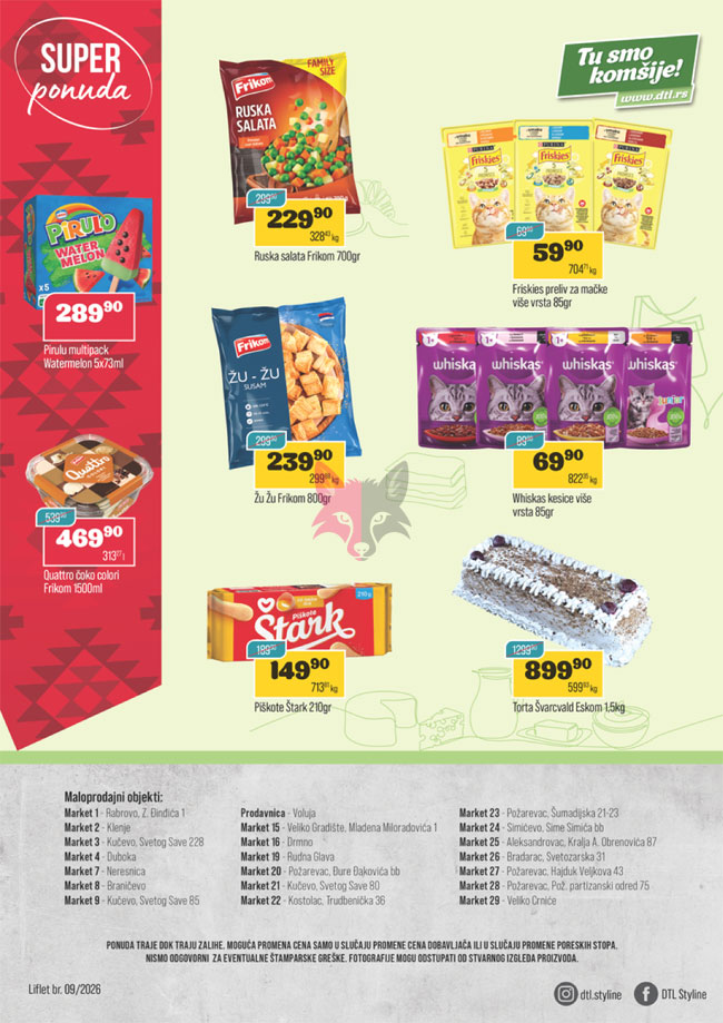 Svi katalozi i cene objavljeni na Lisica.RS Akcijskim katalozima su informativni tako da pre kupovine obavezno proverite ponudu na licu mesta. Pošto trgovci mogu bez najave da izvrše izmenu već objavljenih akcijskih kataloga, Lisica.RS Akcijski katalozi ne može biti odgovoran za važnost i tačnost istih. Lisica.RS Akcijski katalozi ne vrši prodaju proizvoda označenih na akcijskim katalozima.