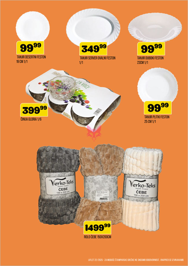 Svi katalozi i cene objavljeni na Lisica.RS Akcijskim katalozima su informativni tako da pre kupovine obavezno proverite ponudu na licu mesta. Pošto trgovci mogu bez najave da izvrše izmenu već objavljenih akcijskih kataloga, Lisica.RS Akcijski katalozi ne može biti odgovoran za važnost i tačnost istih. Lisica.RS Akcijski katalozi ne vrši prodaju proizvoda označenih na akcijskim katalozima.