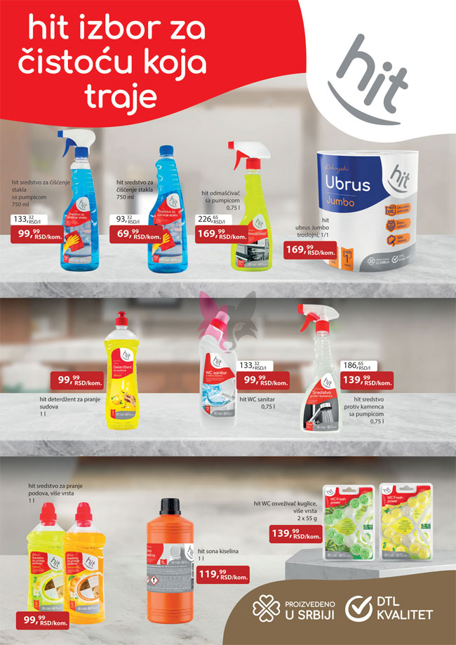 Hrana i piće, Kozmetika i nega, Kućna hemija, Mali kućni aparati, Ostalo za kuću i stan, Sve za kućne ljubimce