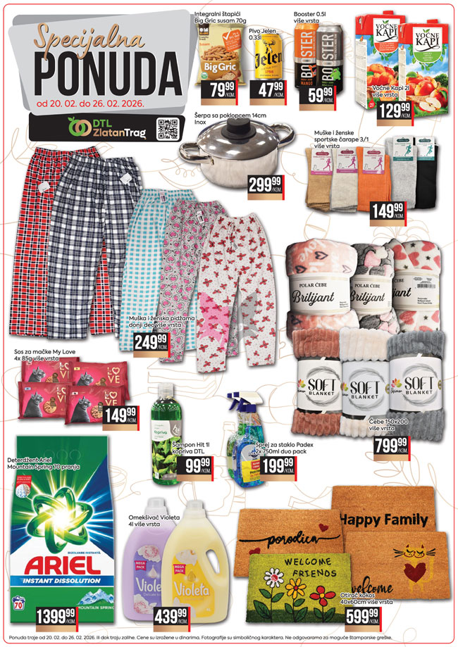 26.02.2026.Hrana i piće, Kozmetika i nega, Kućna hemija, Odeća i obuća, Ostalo za kuću i stan, Sve za kućne ljubimce