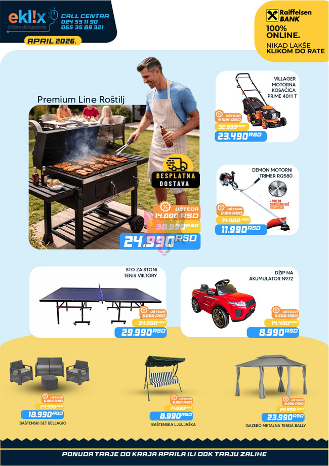 30.04.2026.Alati i mašine, Bicikli, motori, trotineti i hoverboardovi, Nameštaj, Ostalo za kuću i stan, Sportska oprema, Sve za baštu i dvorište, Sve za igru, Sve za leto, Sve za slavlja i praznike