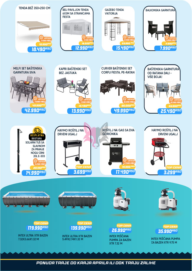 Svi katalozi i cene objavljeni na Lisica.RS Akcijskim katalozima su informativni tako da pre kupovine obavezno proverite ponudu na licu mesta. Pošto trgovci mogu bez najave da izvrše izmenu već objavljenih akcijskih kataloga, Lisica.RS Akcijski katalozi ne može biti odgovoran za važnost i tačnost istih. Lisica.RS Akcijski katalozi ne vrši prodaju proizvoda označenih na akcijskim katalozima.