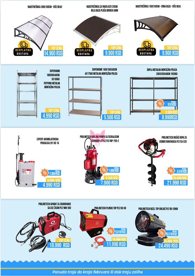 28.02.2026.Alati i mašine, Audio, foto i video uređaji, Bicikli, motori, trotineti i hoverboardovi, Mali kućni aparati, Ostalo za kuću i stan, Sve za baštu i dvorište, Sve za grejanje, Sve za igru