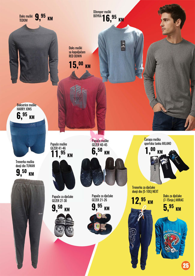 Alati i mašine, Audio, foto i video uređaji, Bela tehnika, Hrana i piće, Kozmetika i nega, Kućna hemija, Mali kućni aparati, Nakit, asesoari i gedžeti, Odeća i obuća, Ostalo za kuću i stan, Rasveta, Sve za auto, Sve za baštu i dvorište, Sve za bebe, Sve za grejanje, Sve za igru, Sve za kućne ljubimce, Sve za zimu