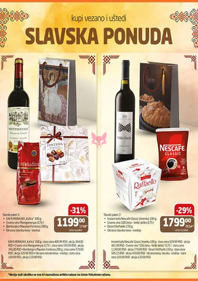 Svi katalozi i cene objavljeni na Lisica.RS Akcijskim katalozima su informativni tako da pre kupovine obavezno proverite ponudu na licu mesta. Pošto trgovci mogu bez najave da izvrše izmenu već objavljenih akcijskih kataloga, Lisica.RS Akcijski katalozi ne može biti odgovoran za važnost i tačnost istih. Lisica.RS Akcijski katalozi ne vrši prodaju proizvoda označenih na akcijskim katalozima.