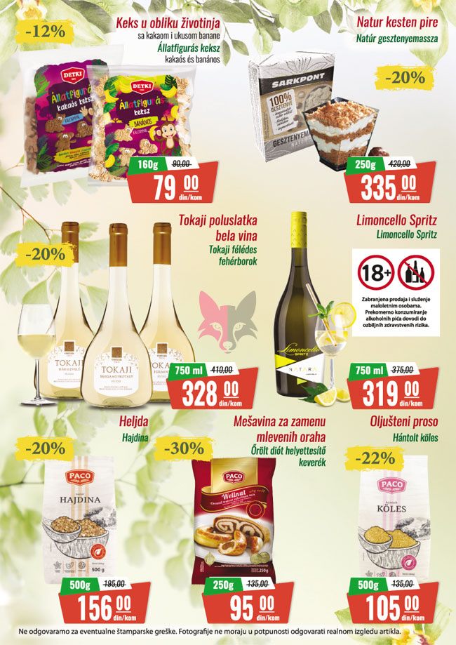Svi katalozi i cene objavljeni na Lisica.RS Akcijskim katalozima su informativni tako da pre kupovine obavezno proverite ponudu na licu mesta. Pošto trgovci mogu bez najave da izvrše izmenu već objavljenih akcijskih kataloga, Lisica.RS Akcijski katalozi ne može biti odgovoran za važnost i tačnost istih. Lisica.RS Akcijski katalozi ne vrši prodaju proizvoda označenih na akcijskim katalozima.