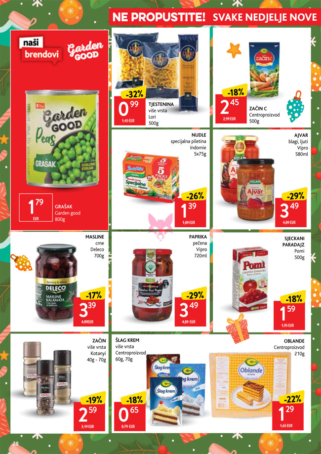 Hrana i piće, Kozmetika i nega, Kućna hemija, Ostalo za kuću i stan, Sve za bebe, Sve za igru, Sve za kućne ljubimce