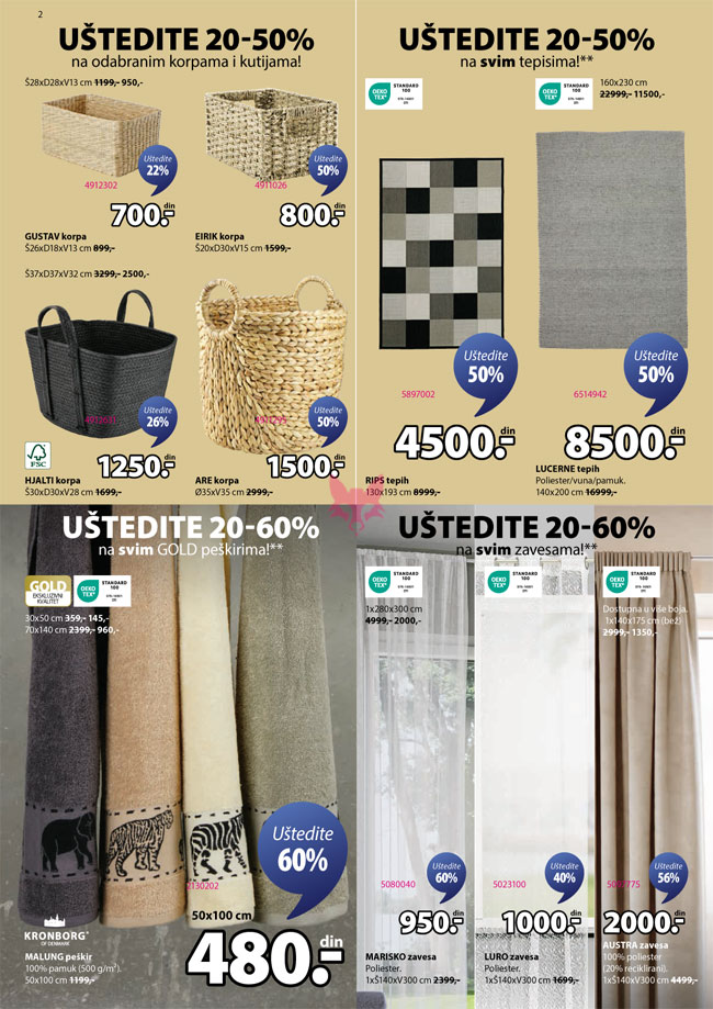 Nameštaj, Odeća i obuća, Opremanje kupatila, Ostalo za kuću i stan, Rasveta, Sve za kancelariju, Sve za slavlja i praznike