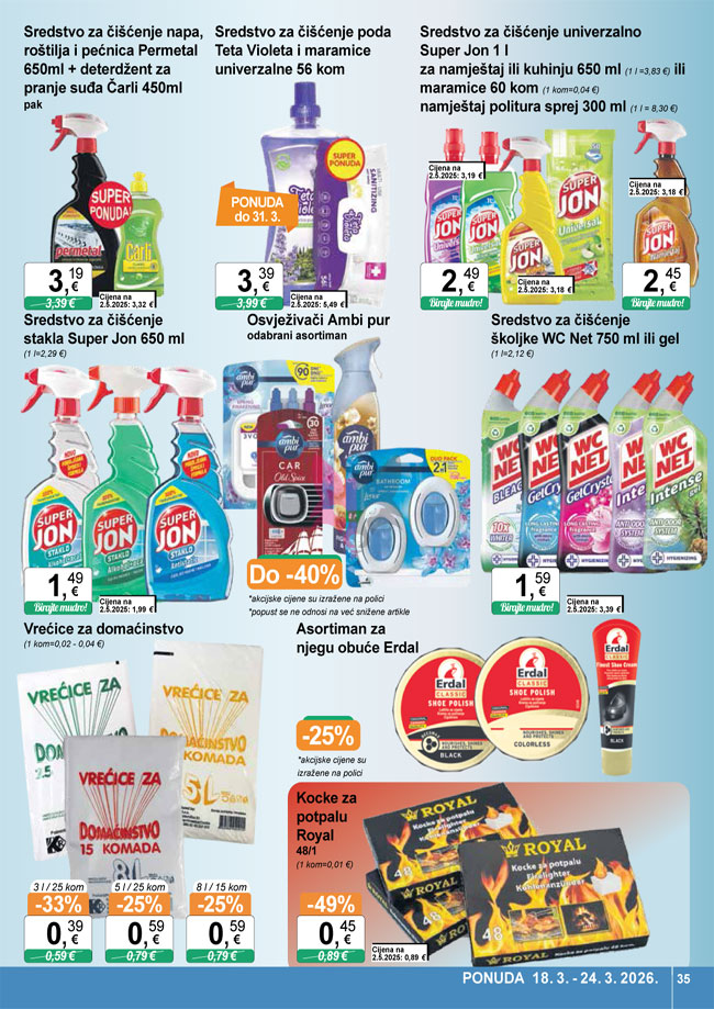 Hrana i piće, Kozmetika i nega, Kućna hemija, Ostalo za kuću i stan, Sve za bebe, Sve za kućne ljubimce, Sve za slavlja i praznike