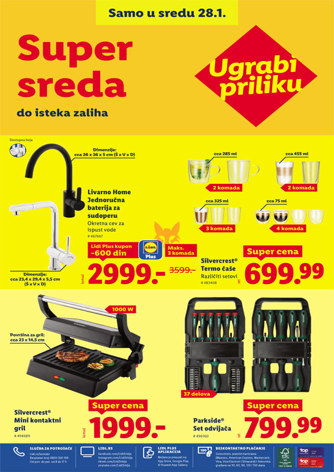 28.01.2026.Alati i mašine, Hrana i piće, Kozmetika i nega, Kućna hemija, Mali kućni aparati, Odeća i obuća, Ostalo za kuću i stan, Sve za baštu i dvorište, Sve za kućne ljubimce