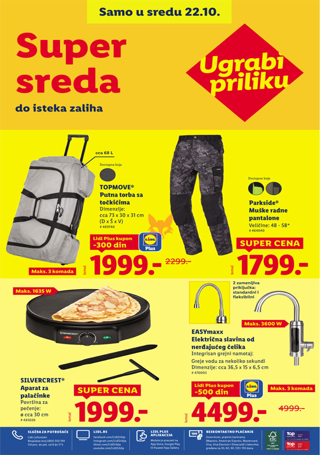 22.10.2025.Alati i mašine, Hrana i piće, Kozmetika i nega, Kućna hemija, Mali kućni aparati, Odeća i obuća, Ostalo za kuću i stan, Rasveta, Sve za baštu i dvorište, Sve za kućne ljubimce, Sve za putovanje, Sve za slavlja i praznike