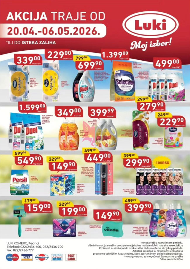 Svi katalozi i cene objavljeni na Lisica.RS Akcijskim katalozima su informativni tako da pre kupovine obavezno proverite ponudu na licu mesta. Pošto trgovci mogu bez najave da izvrše izmenu već objavljenih akcijskih kataloga, Lisica.RS Akcijski katalozi ne može biti odgovoran za važnost i tačnost istih. Lisica.RS Akcijski katalozi ne vrši prodaju proizvoda označenih na akcijskim katalozima.