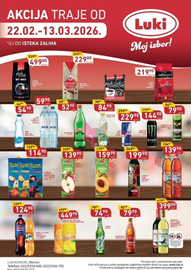Svi katalozi i cene objavljeni na Lisica.RS Akcijskim katalozima su informativni tako da pre kupovine obavezno proverite ponudu na licu mesta. Pošto trgovci mogu bez najave da izvrše izmenu već objavljenih akcijskih kataloga, Lisica.RS Akcijski katalozi ne može biti odgovoran za važnost i tačnost istih. Lisica.RS Akcijski katalozi ne vrši prodaju proizvoda označenih na akcijskim katalozima.
