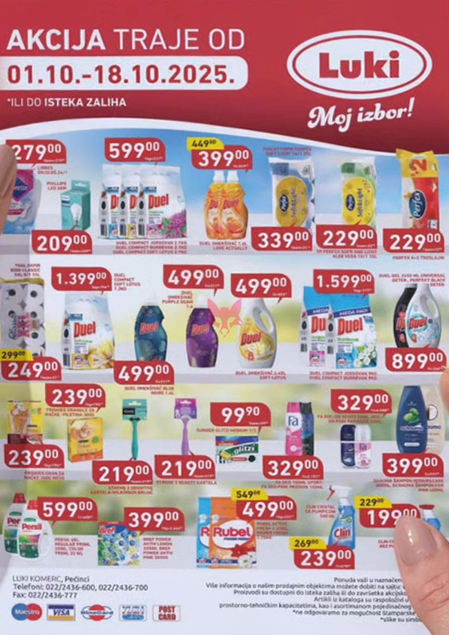 Svi katalozi i cene objavljeni na Lisica.RS Akcijskim katalozima su informativni tako da pre kupovine obavezno proverite ponudu na licu mesta. Pošto trgovci mogu bez najave da izvrše izmenu već objavljenih akcijskih kataloga, Lisica.RS Akcijski katalozi ne može biti odgovoran za važnost i tačnost istih. Lisica.RS Akcijski katalozi ne vrši prodaju proizvoda označenih na akcijskim katalozima.
