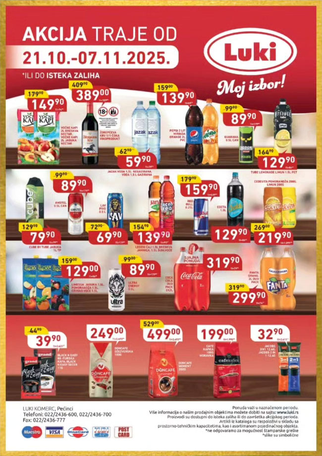 Svi katalozi i cene objavljeni na Lisica.RS Akcijskim katalozima su informativni tako da pre kupovine obavezno proverite ponudu na licu mesta. Pošto trgovci mogu bez najave da izvrše izmenu već objavljenih akcijskih kataloga, Lisica.RS Akcijski katalozi ne može biti odgovoran za važnost i tačnost istih. Lisica.RS Akcijski katalozi ne vrši prodaju proizvoda označenih na akcijskim katalozima.