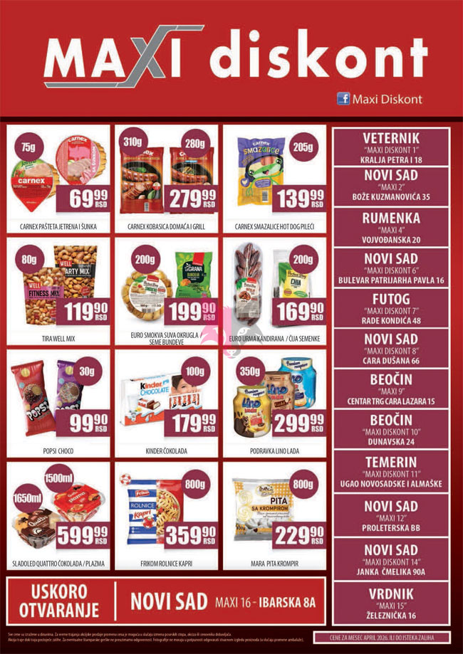Svi katalozi i cene objavljeni na Lisica.RS Akcijskim katalozima su informativni tako da pre kupovine obavezno proverite ponudu na licu mesta. Pošto trgovci mogu bez najave da izvrše izmenu već objavljenih akcijskih kataloga, Lisica.RS Akcijski katalozi ne može biti odgovoran za važnost i tačnost istih. Lisica.RS Akcijski katalozi ne vrši prodaju proizvoda označenih na akcijskim katalozima.