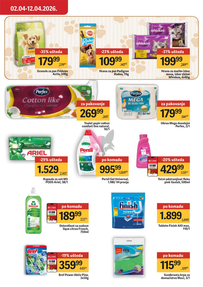 12.04.2026.Hrana i piće, Kozmetika i nega, Kućna hemija, Ostalo za kuću i stan, Sve za bebe, Sve za kućne ljubimce, Sve za slavlja i praznike