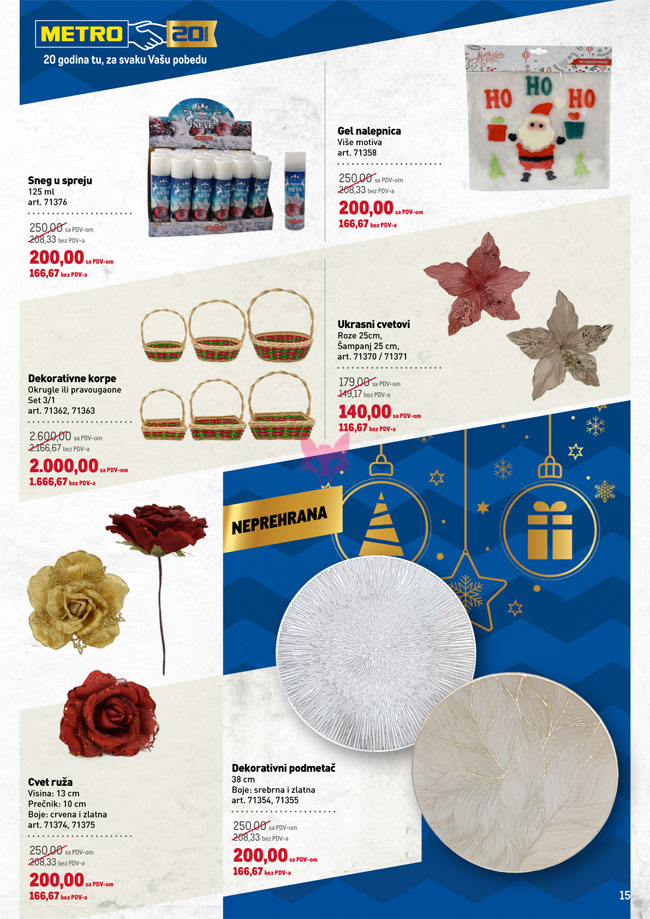 Alati i mašine, Audio, foto i video uređaji, Hrana i piće, Kozmetika i nega, Mali kućni aparati, Nameštaj, Ostalo za kuću i stan, Sve za baštu i dvorište, Sve za bebe, Sve za grejanje, Sve za kancelariju, Sve za slavlja i praznike, Sve za zimu
