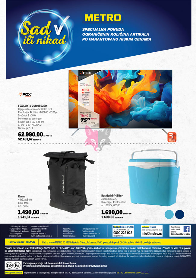 13.05.2026.Alati i mašine, Audio, foto i video uređaji, Bela tehnika, Hrana i piće, Klima uređaji, Kozmetika i nega, Kućna hemija, Mali kućni aparati, Nameštaj, Ostalo za kuću i stan, Sve za kampovanje i boravak u prirodi, Sve za kancelariju, Sve za leto