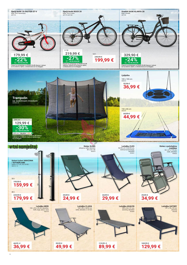 Bicikli, motori, trotineti i hoverboardovi, HoReCa, Hrana i piće, Mali kućni aparati, Nameštaj, Ostalo za kuću i stan, Sve za baštu i dvorište, Sve za igru, Sve za kampovanje i boravak u prirodi, Sve za leto, Sve za slavlja i praznike