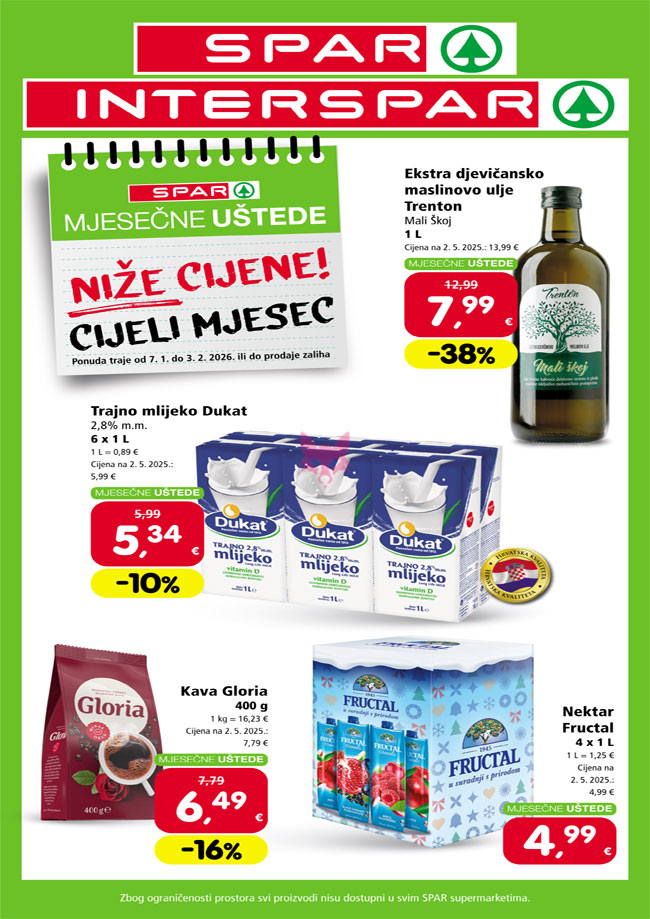 Spar, Hrvatska : Niže cijene cijeli mjesec