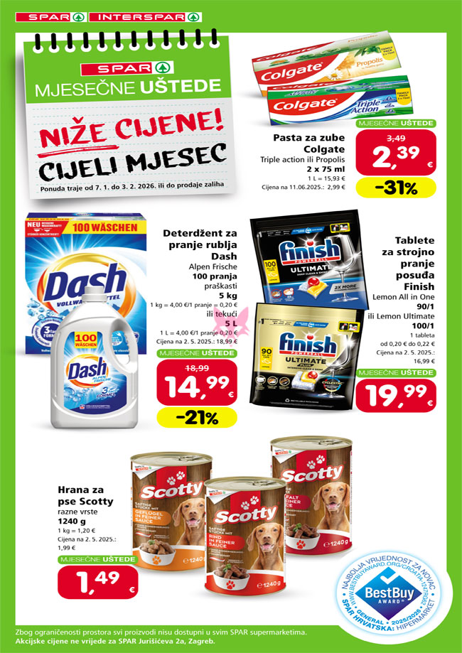 Spar, Hrvatska : Niže cijene cijeli mjesec