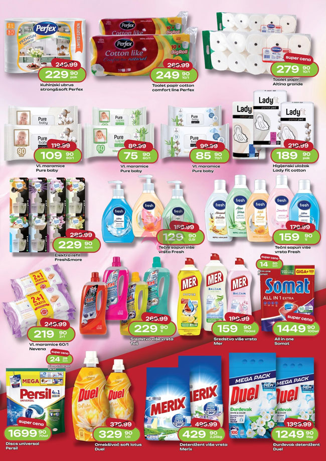 Hrana i piće, Kozmetika i nega, Kućna hemija, Mali kućni aparati, Ostalo za kuću i stan, Sve za bebe, Sve za kućne ljubimce