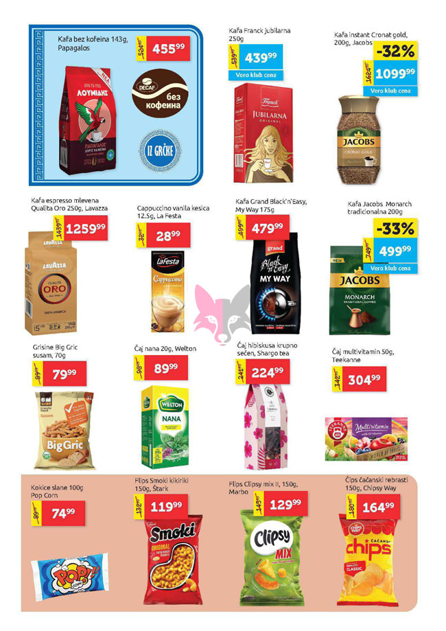 Hrana i piće, Kozmetika i nega, Kućna hemija, Ostalo za kuću i stan, Sve za bebe, Sve za kućne ljubimce, Sve za slavlja i praznike