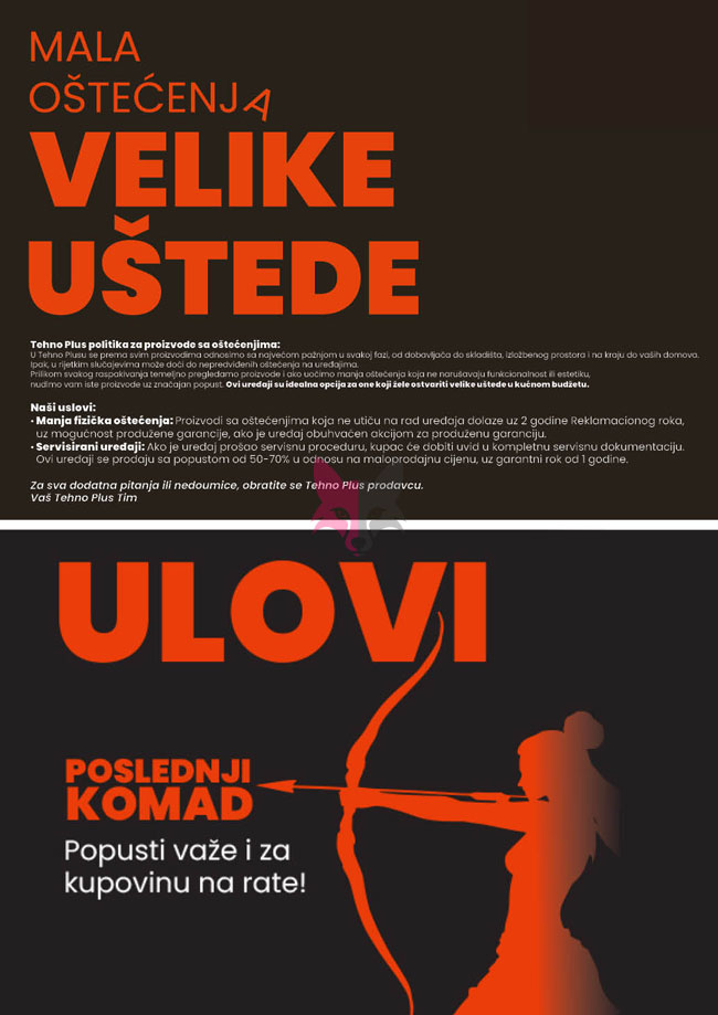 Svi katalozi i cene objavljeni na Lisica.RS Akcijskim katalozima su informativni tako da pre kupovine obavezno proverite ponudu na licu mesta. Pošto trgovci mogu bez najave da izvrše izmenu već objavljenih akcijskih kataloga, Lisica.RS Akcijski katalozi ne može biti odgovoran za važnost i tačnost istih. Lisica.RS Akcijski katalozi ne vrši prodaju proizvoda označenih na akcijskim katalozima.