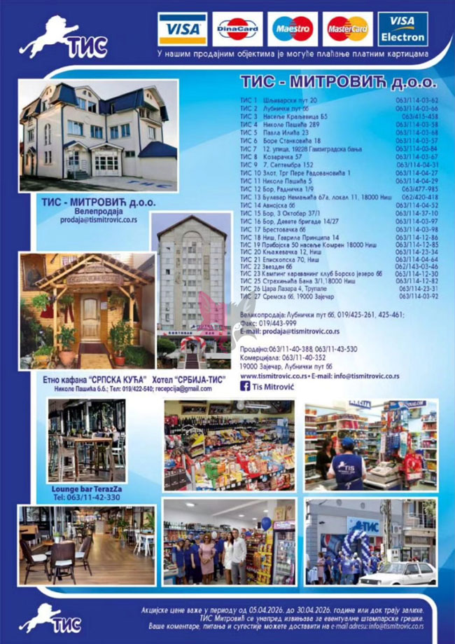 Svi katalozi i cene objavljeni na Lisica.RS Akcijskim katalozima su informativni tako da pre kupovine obavezno proverite ponudu na licu mesta. Pošto trgovci mogu bez najave da izvrše izmenu već objavljenih akcijskih kataloga, Lisica.RS Akcijski katalozi ne može biti odgovoran za važnost i tačnost istih. Lisica.RS Akcijski katalozi ne vrši prodaju proizvoda označenih na akcijskim katalozima.